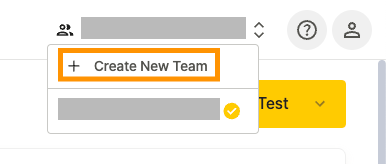 1. Click {Username}'s team in the top-right corner and click Create New Team.