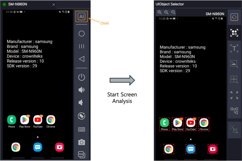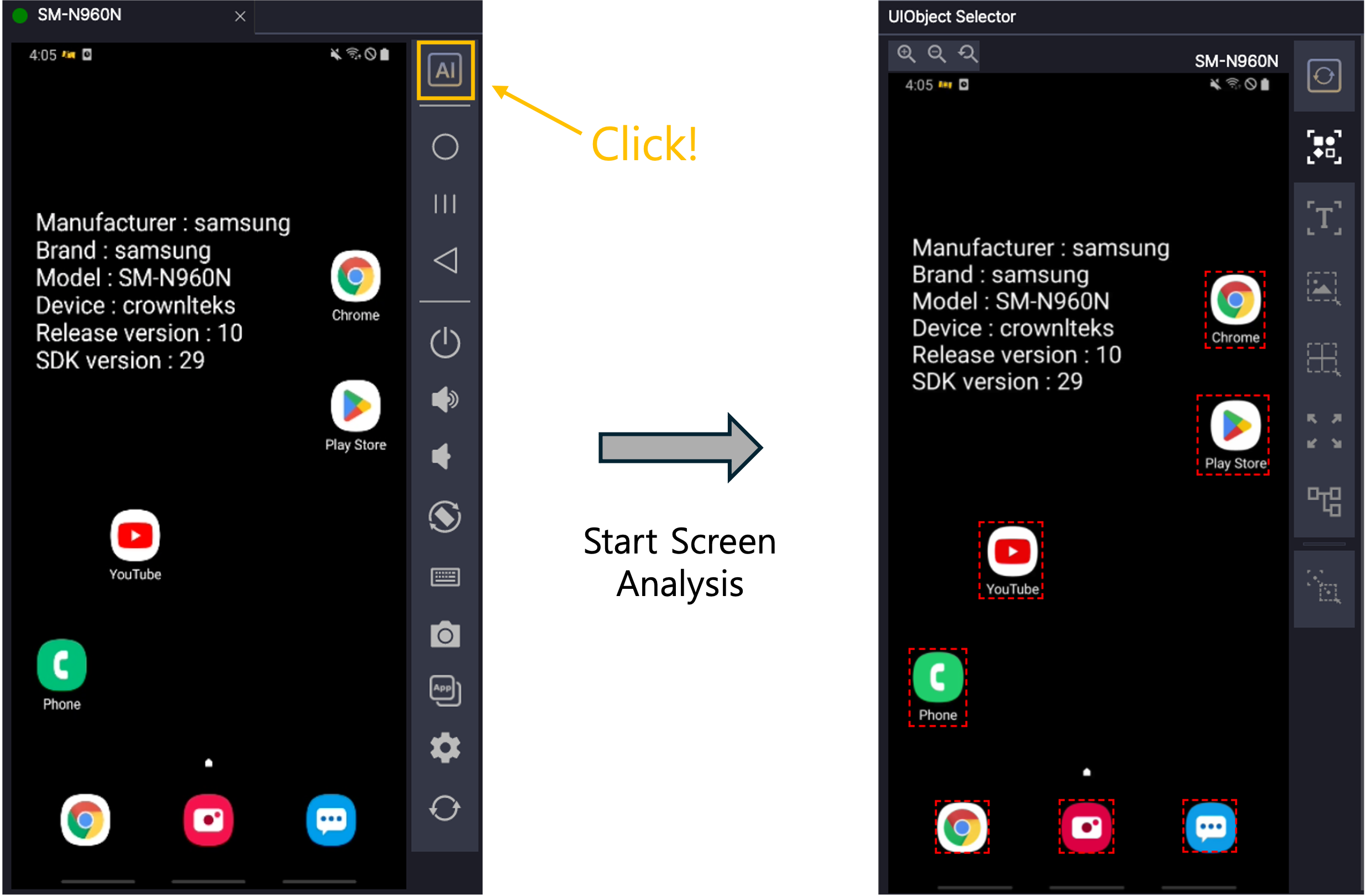 Step 3. On the screen, select the Play Store app icon and drag and drop it to the UIObject field.