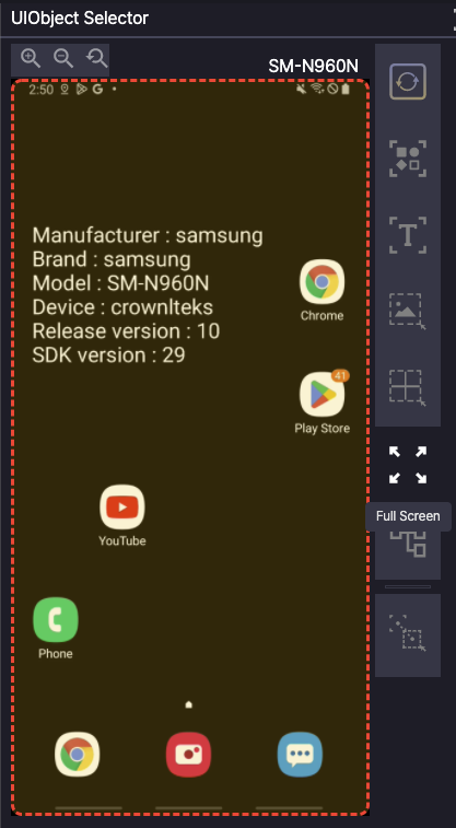 select “Full Screen” after screen analysis, and drag and drop it into the child UIObject field.