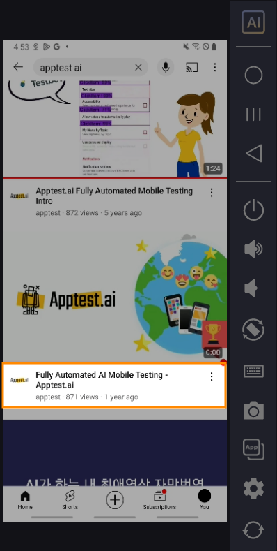 Step 1. Launch YouTube, search for “Apptest.ai”, and locate the desired video.