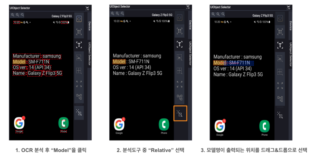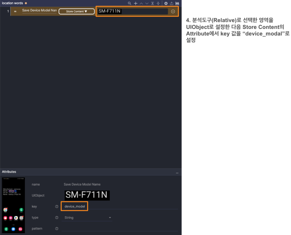 Drag and drop the text area next to Model as the step’s UIObject to store the model name.