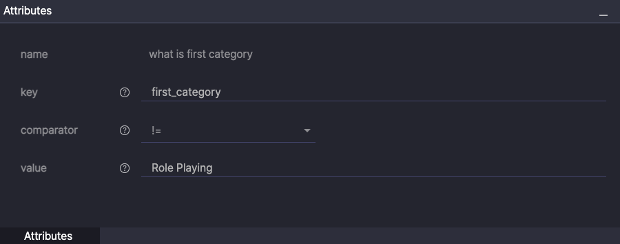 Step 4. Open Attributes and set Comparator = “EXISTS”.