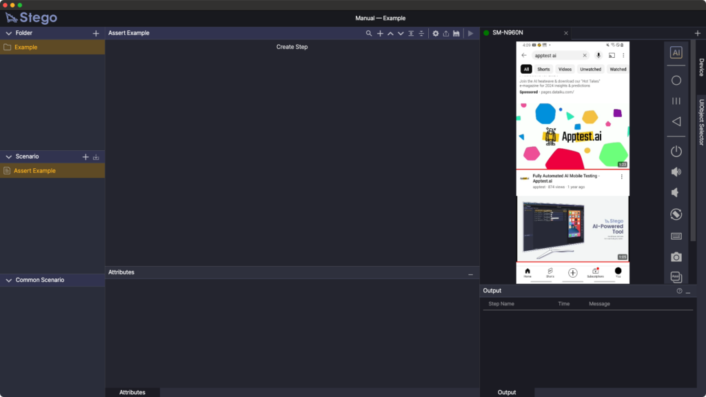 Step 7. Return the device to the same screen state as when the scenario was first authored in Stego, then run the steps.