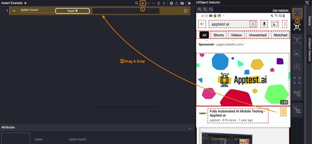 Step 3. Select “YouTube” on the screen, then drag and drop it into the UIObject field.