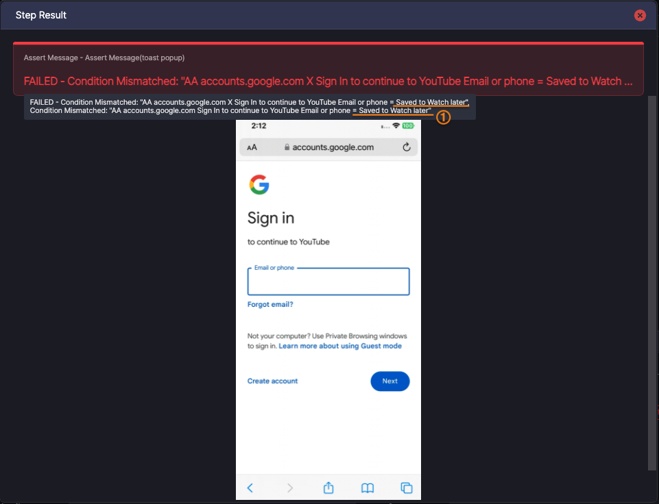 Step 6. In the Step Result of the Checkpoints action, verify whether all defined checkpoints on the device screen meet their conditions.