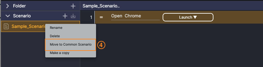 ④ In the Scenario List panel, right-click the created scenario and click “Move to Common Scenario”.
