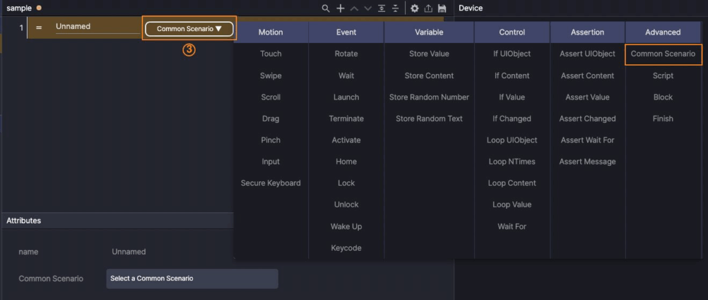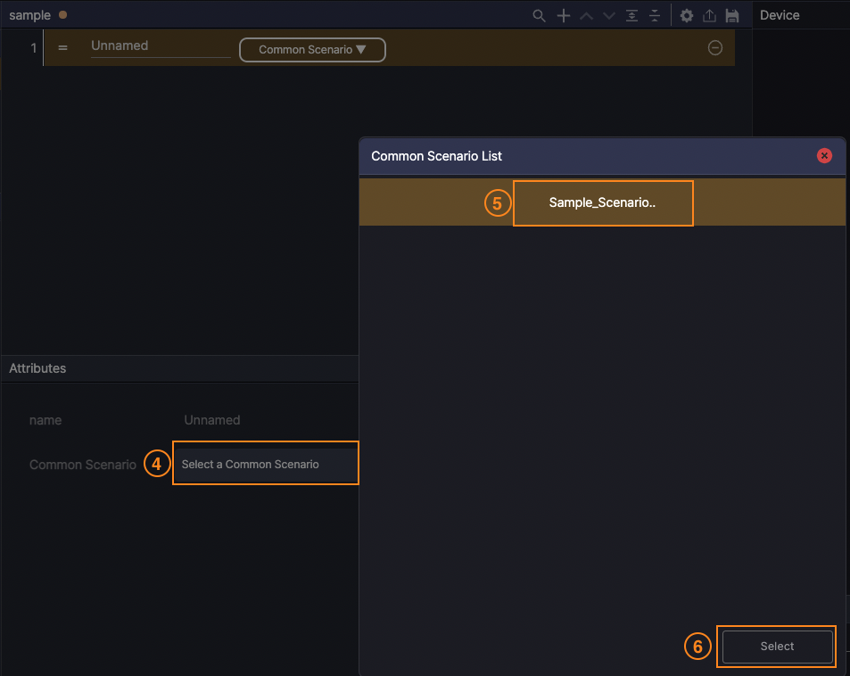 ⑤-⑥ Select the previously created item from the Common Scenario list.