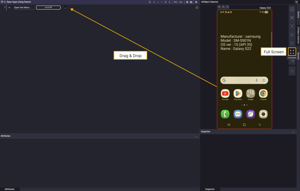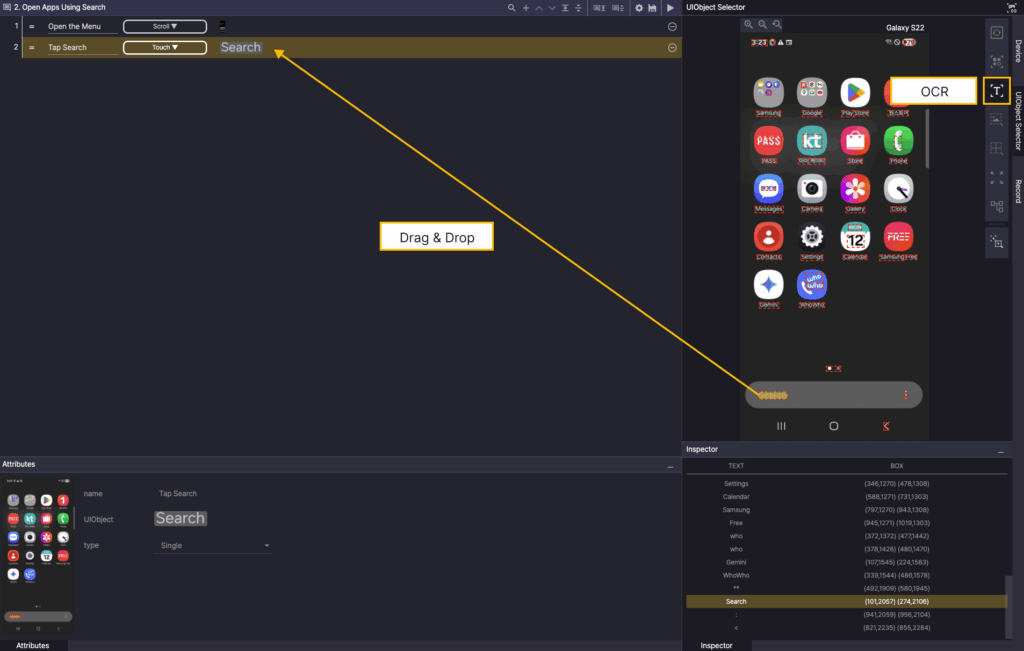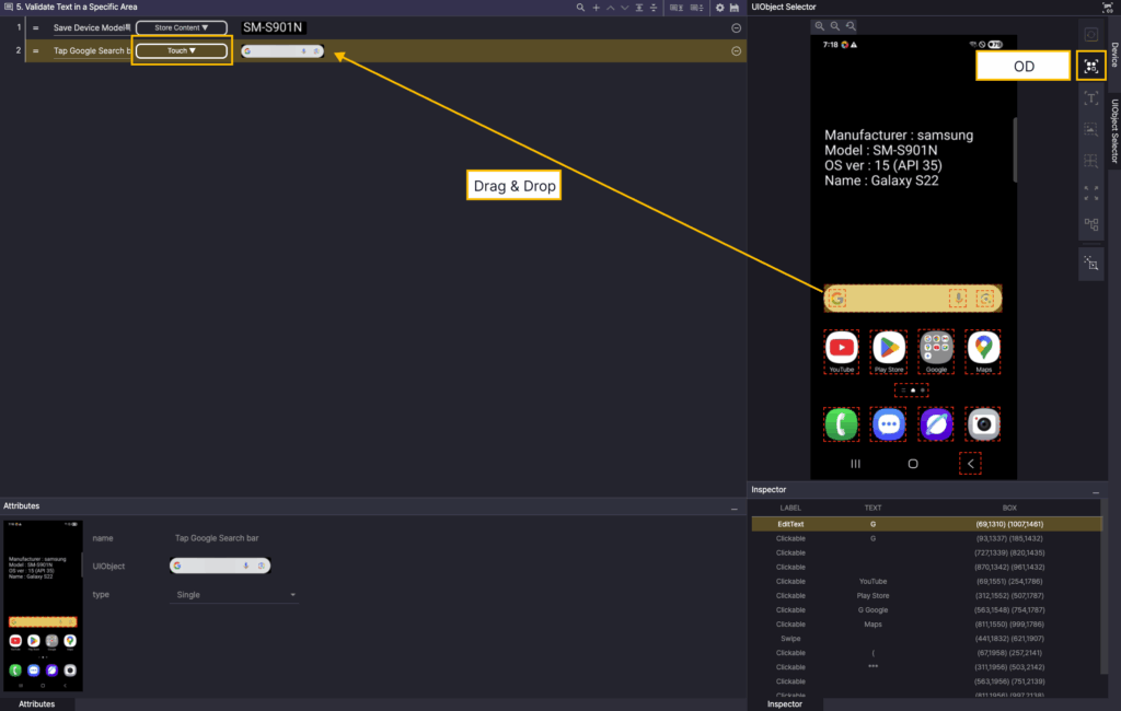 In the Screen Analyzer, select OD, and then add the Google Search bar OD as a UIObject in the step.