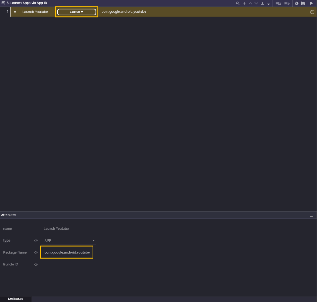 For Attributes, in the PackageName, enter the app ID (com.google.android.youtube) for Youtube.