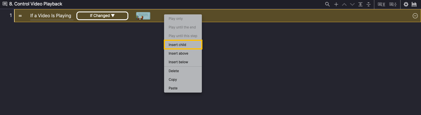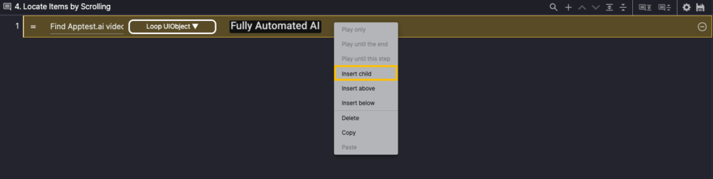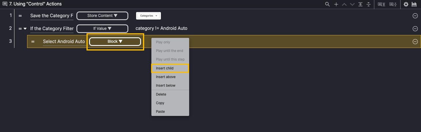 Right-click Step 3 and select Insert child to add a Child Step.