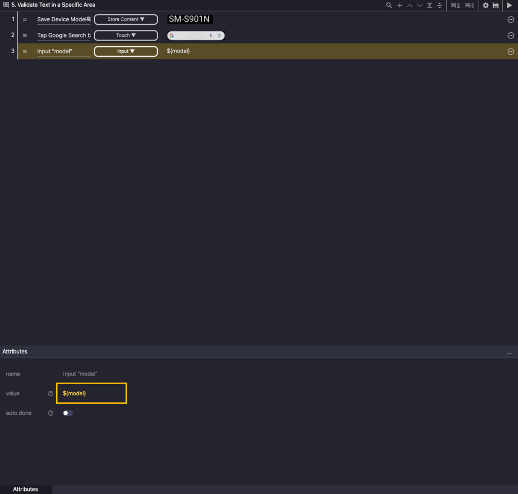 Step 3. Create a new step, select the Input action, and enter ${model} in the value of the Attributes.