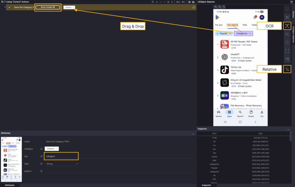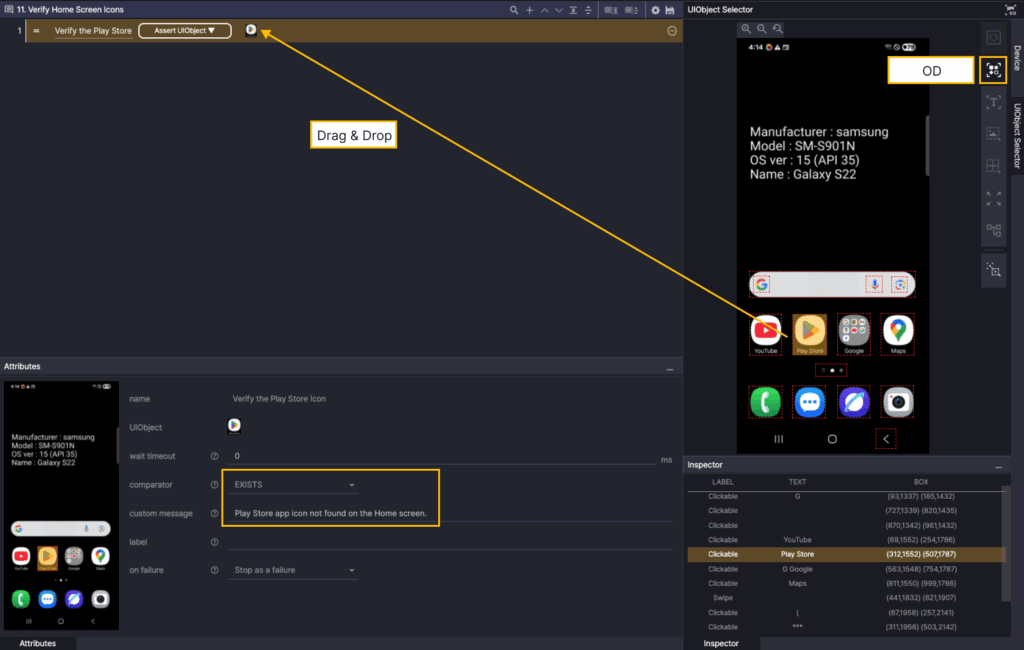 In the Screen Analyzer, select OD, and then add the Play Store icon OD as UIObject.