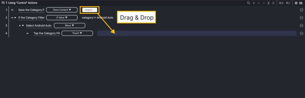 Let’s use the Store Content action and the If Value action to create a scenario where the Top charts category in the Play Store changes the category to Android Auto if it is not already set to Android Auto.