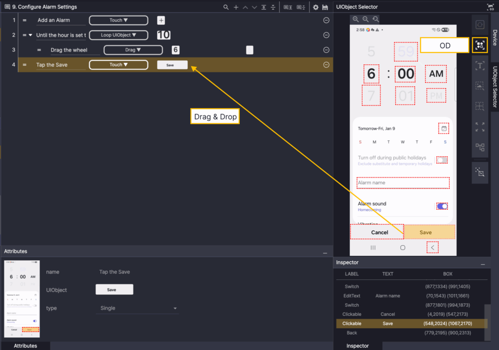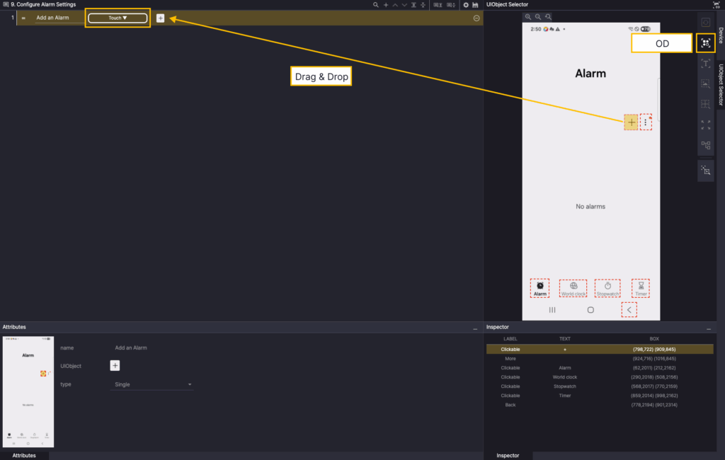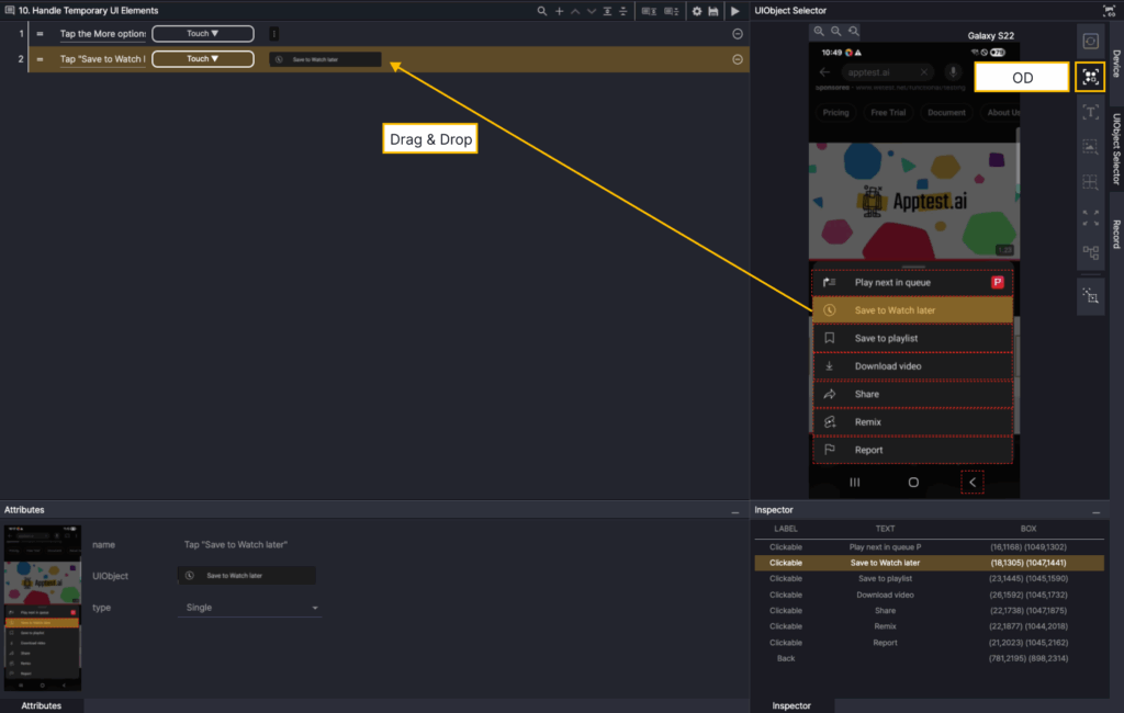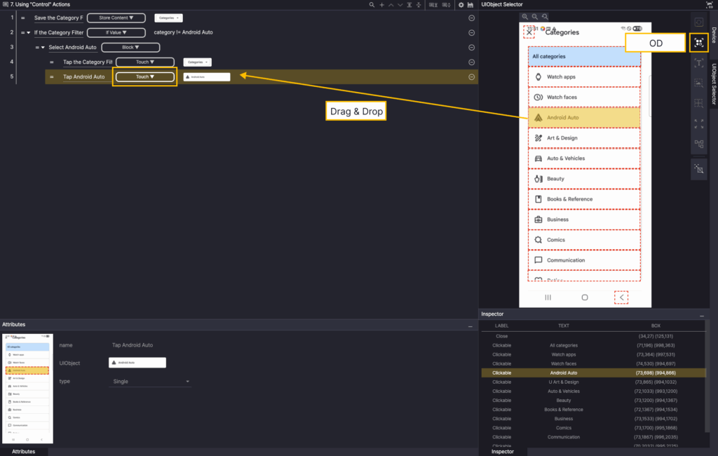 In the Screen Analyzer, select OD, and then add the Android Auto OD as a UIObject in the step.