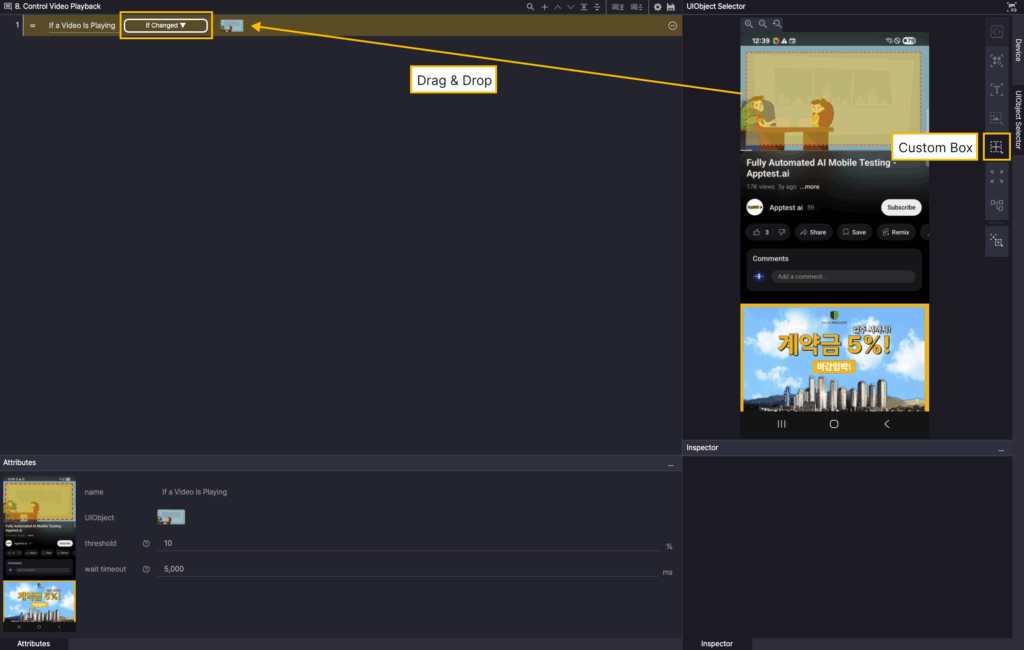 Select Custom Box in the Screen Analysis tool, and then drag the playing video area of the device screen to add that area as a UIObject.