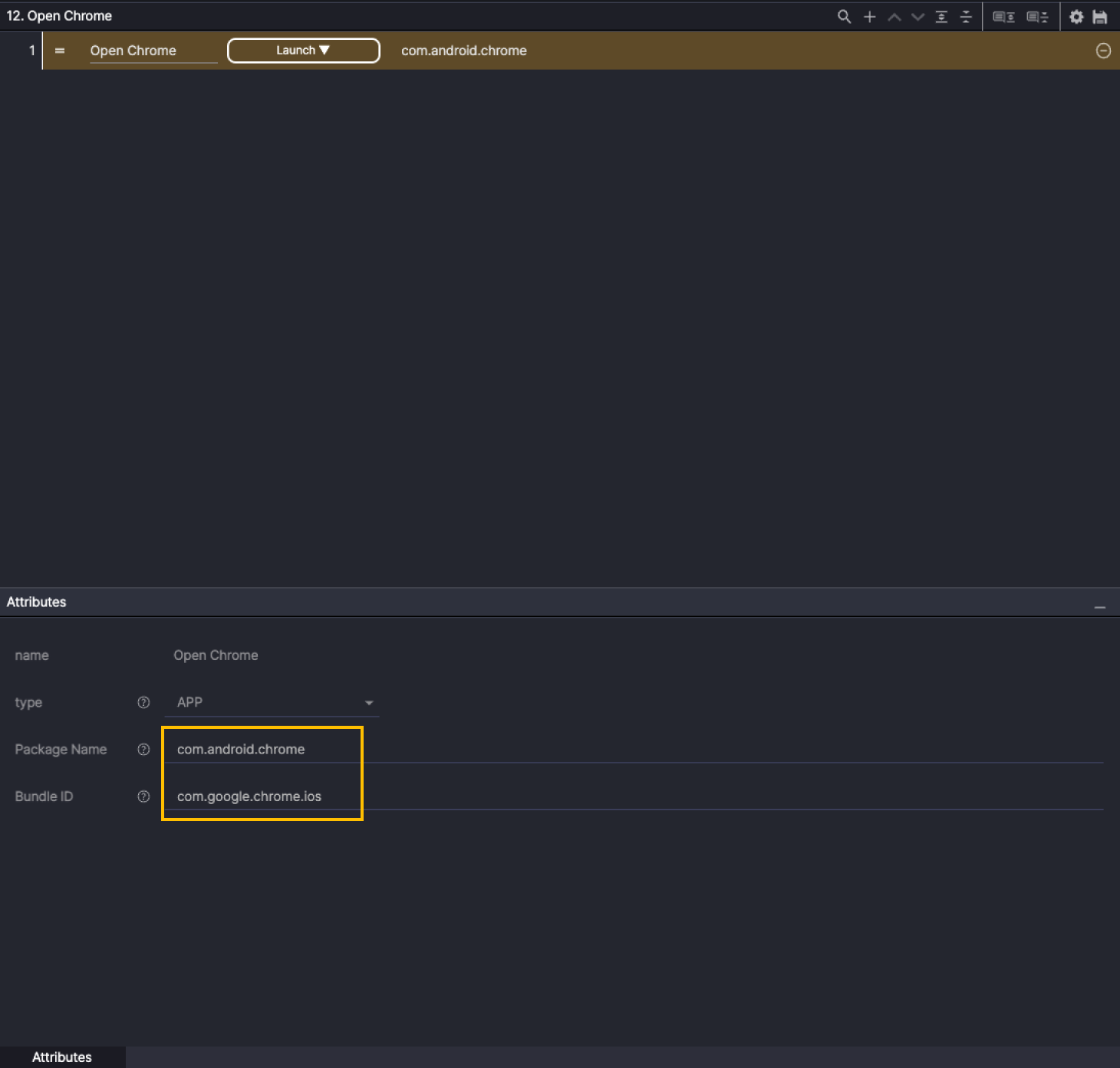 For Attributes, enter Chrome’s Android app ID for Package Name, and for Bundle ID, enter Chrome’s iOS app ID.