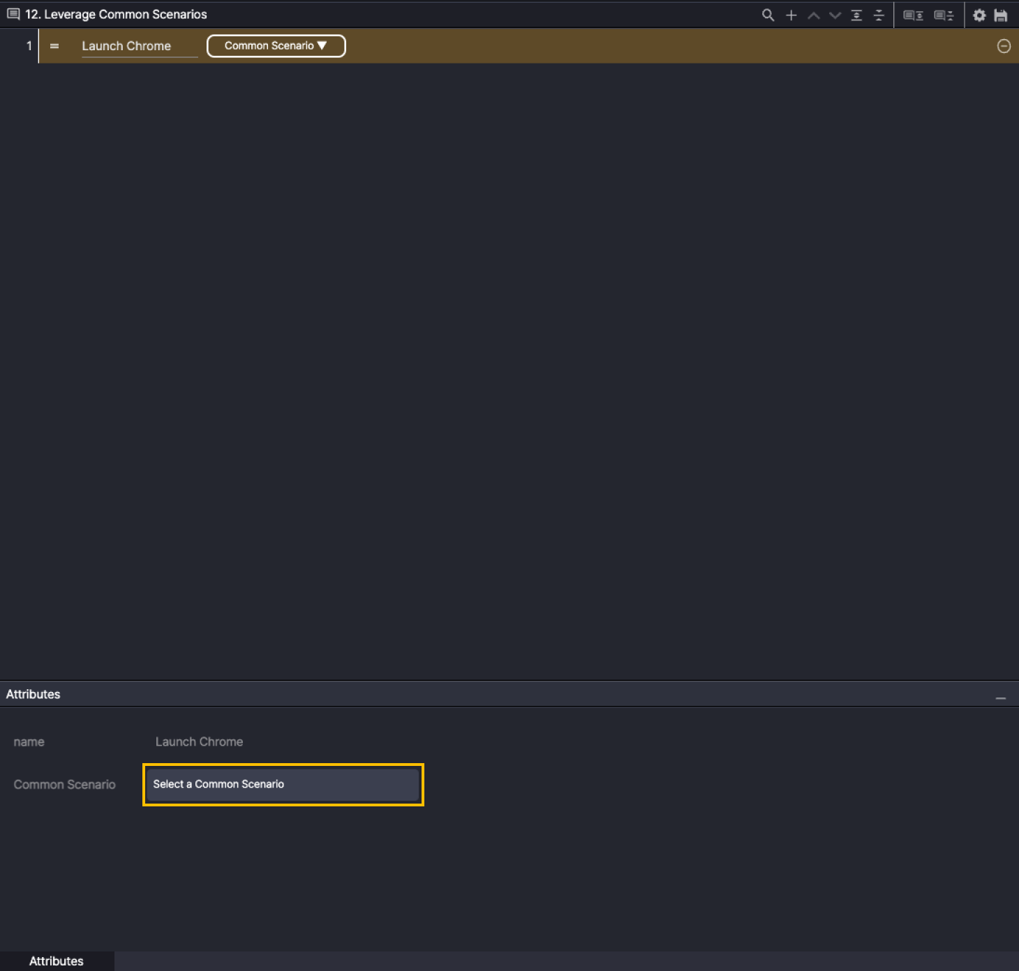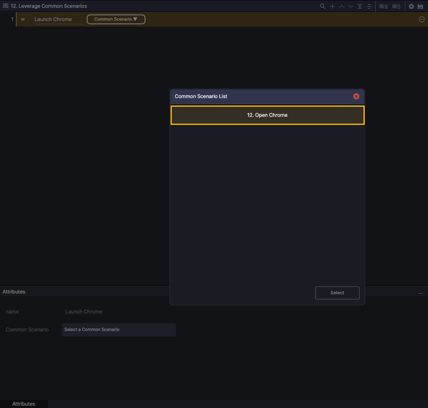 Step 1. Select the Common Scenario action, and under Attributes, click Select a Common Scenario.