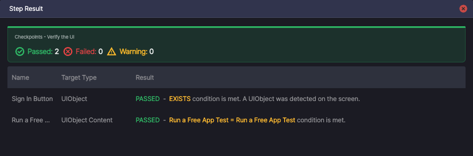 If you select a checkpoint item in the Step Result, you can see the detailed results of that item.
